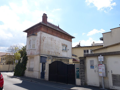 Cette coquette maison des années 30 présente sur deux de ses façades une enseigne peinte pour le chantier de la Plaine. Maison témoin ou bâtiment administratif de l'entreprise, la maison rassemble ici toute les possibilités constructives et décoratives imaginables. On notera ainsi la finesse de la crête et des deux épis de faîtage, les grands panneaux de brique à motifs sous la fermeture d'avant-toit, la frise à volutes en terre cuite qui court sous les panneaux de brique, l'oriel couvert de tuiles vernissées bleues, donnant sur la rue et les ferronneries fleuries du garde-corps de la fenêtre. En face, aux numéros 38 et 40 deux maisons ont été construites à la même époque et présentent des panneaux animaliers en céramique intéressants (un chat chassant des oiseaux et deux dindons se faisant face).